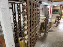 140 threads wide are turned onto a large drum that feeds the weaving machine